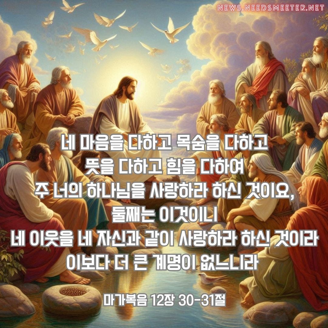 나의 마음을 다해 하나님을 사랑할 수 있도록 도와주옵소서. 내 뜻과 욕심이 아니라, 하나님의 뜻을 따르는 삶을 살게 하옵소서. 하나님을 향한 나의 사랑이 형식적인 것이 아니라, 진실된 마음에서 비롯된 사랑이 되기를 원합니다.