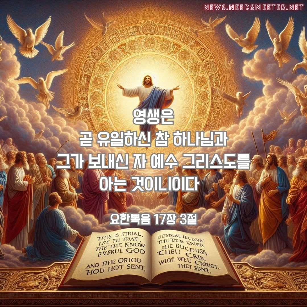 영생이 오직 하나님과 예수 그리스도를 아는 것임을 깨닫게 하시니 감사합니다. 내 삶 속에서 하나님을 더욱 깊이 알고, 예수님과 동행하는 삶을 살 수 있도록 도와주옵소서.