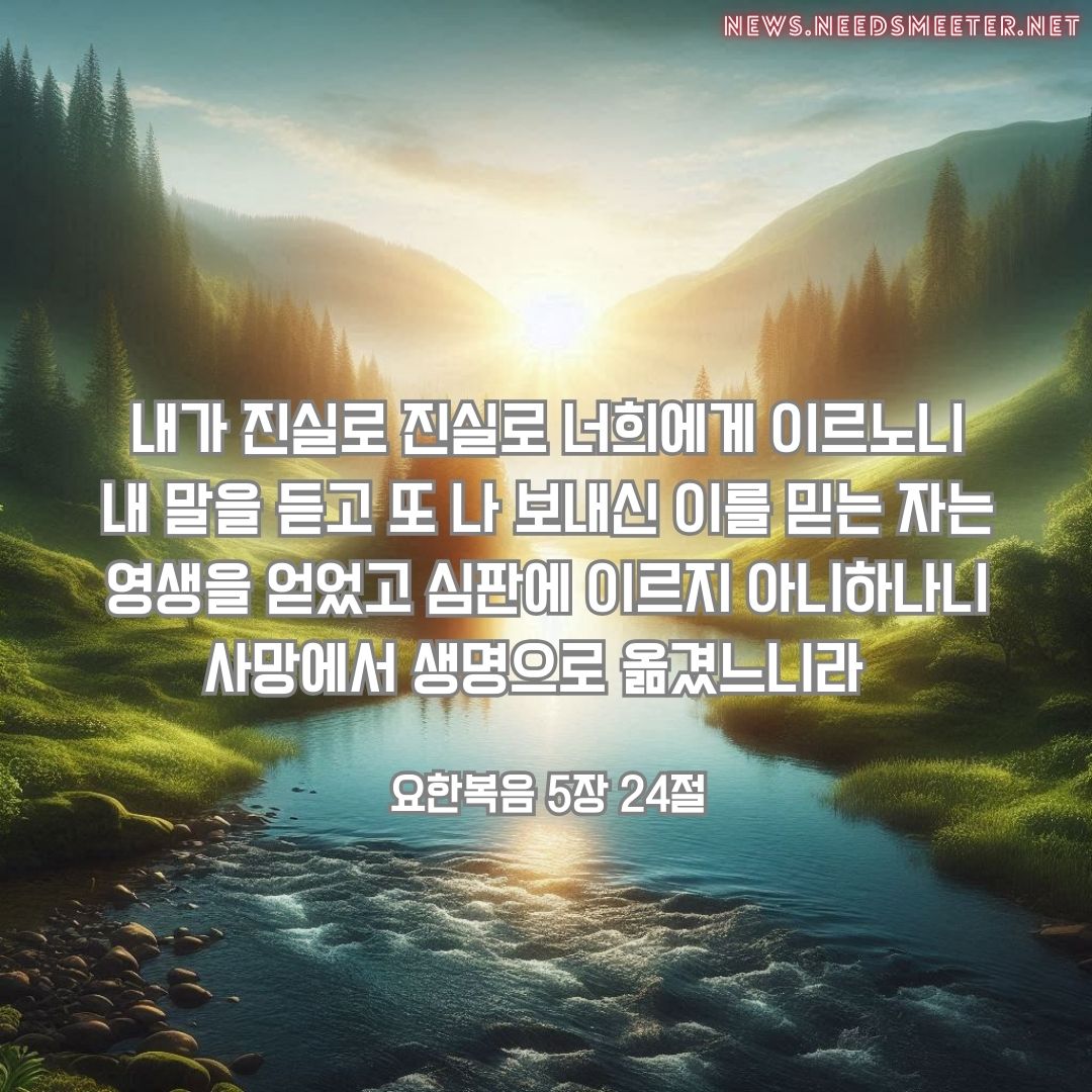 이 말씀은 예수님께서 영생에 대해 가르치신 내용으로, 하나님을 믿고 예수님의 말씀을 듣는 자는 심판을 받지 않고 영생을 얻는다는 의미를 담고 있습니다. 예수님께서는 자신의 말씀을 듣고 하나님을 믿는 자가 사망에서 생명으로 옮겨진다고 말씀하셨습니다. 이는 단순한 윤리적 변화가 아니라, 믿음을 통해 얻는 구원의 확신과 영원한 생명을 의미합니다.