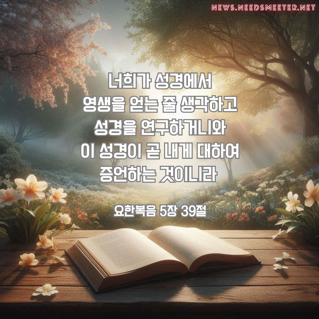 이 말씀은 예수님께서 유대인들에게 하신 말씀으로, 성경을 연구하는 것이 영생을 얻는 길이라고 생각하지만, 실상 성경이 증거하는 이는 예수님 자신이라는 의미를 담고 있습니다. 당시 유대인들은 율법과 예언서를 연구하면서도 정작 예수님을 받아들이지 않았으며, 예수님은 성경이 가리키는 구원자가 바로 자신임을 강조하셨습니다.